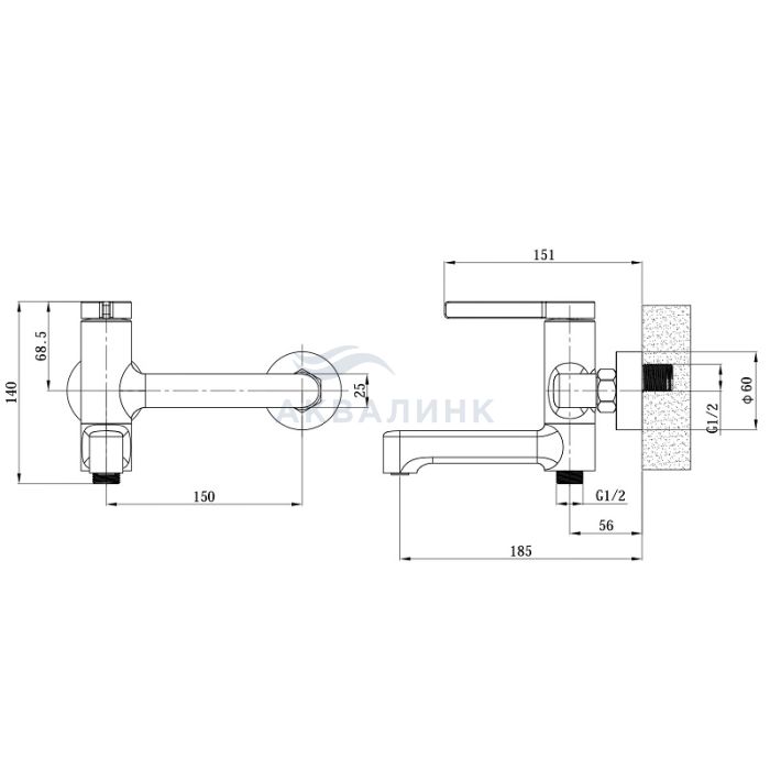 Смеситель для ванны и душа ESKO Sochi (Сочи), хром SC54-2 (без аксессуаров)