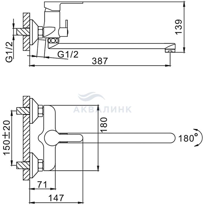 F2241 Смеситель д/ванны, перек. в корп. L=35, белый, д.35, 1/10