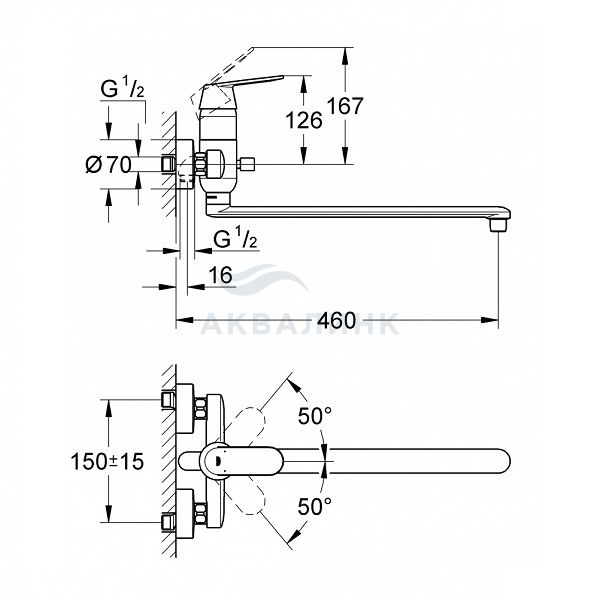 Смеситель для ванны и душа GROHE Eurosmart Cosmopolitan 32847000 универсальный