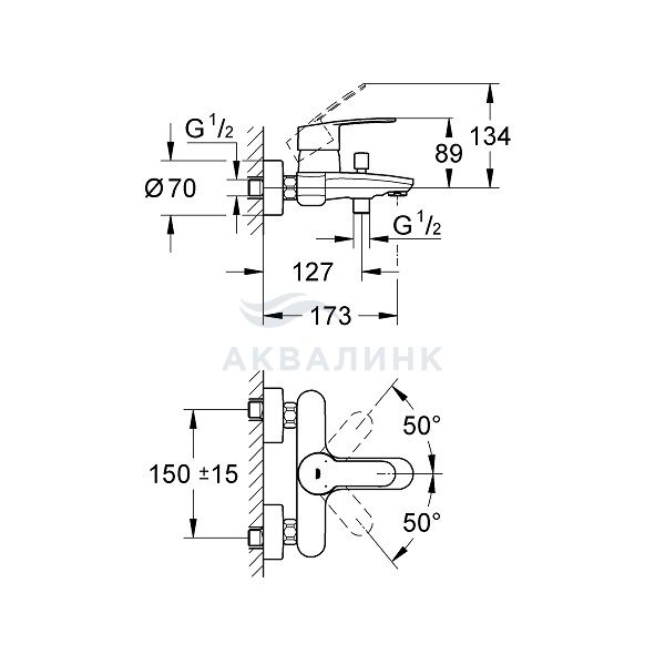 Смеситель для ванны и душа GROHE Eurostyle Cosmopolitan 33591002