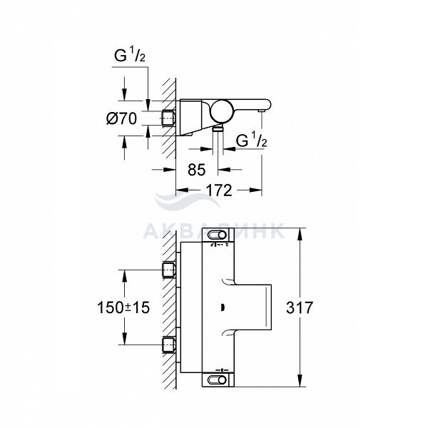 Смеситель для ванны и душа GROHE Grohtherm с термостатом 2000 34464001 с полочкой