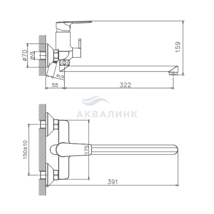 Смеситель для ванны и душа Haiba HB22563 длинный излив, керам. перекл.