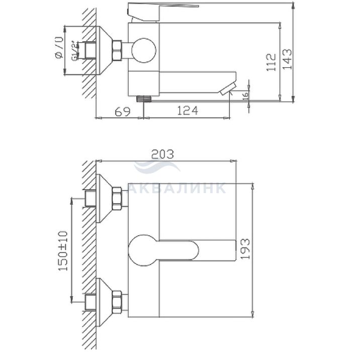Смеситель для ванны и душа Haiba HB60801 короткий излив, нерж.сталь РАСПРОДАЖА!