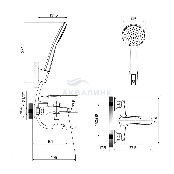 Смеситель для ванны Ray имеет универсальный дизайн и благодаря актуальному матовому черному цвету станет ярким акцентом современного интерьера ванной. В комплекте однорежимная лейка для душа, ПВХ-шланг и настенный держатель для лейки – все в тон смесителя. • Надежный корпус из прочной первичной латуни марки ЛЦ40С ГОСТ 17711-93 с пониженным содержанием свинца — стойкий к коррозии, резким изменениям давления и перепадам температуры воды. • Плавный ход ручки и абсолютная точность регулировки температуры и напора воды — за счет качественного керамического картриджа Softap. Он выдерживает максимальную температуру до 95С и гидроудар до 35 атмосфер, прошел тестирование на жизненный цикл по европейскому стандарту EN817. • Керамический дивертор надежно и плавно переключает поток воды с излива на лейку даже при минимальном давлении воды в трубах. • Съемный силиконовый аэратор Neoperl® гарантирует