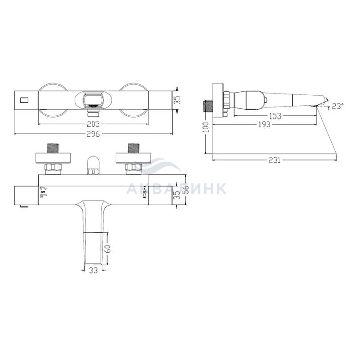 UNISB02i74WA Универсальный смеситель для ванны с термостатом Uniterm Уникальные преимущества: Подключение к системе водоснабжения независимо от расположения труб горячей и холодной воды.