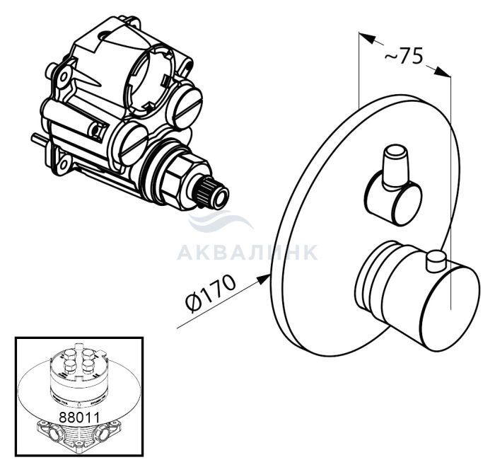 Смеситель для ванны и душа KLUDI ZENTA 388300545 с термостатом внешняя часть
