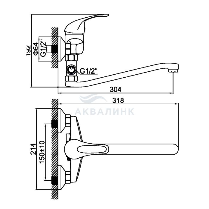 Смеситель для ванны и душа LEDEME L2129-B длинный излив (силумин)