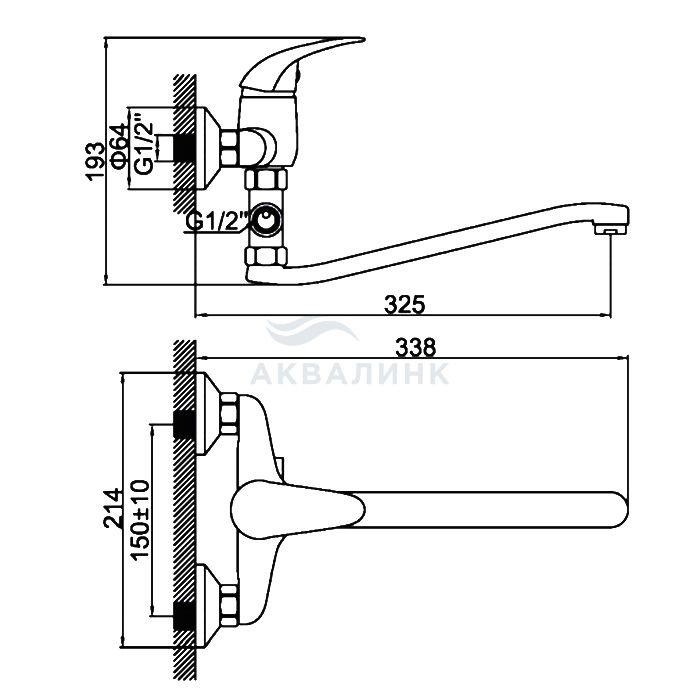 Смеситель для ванны и душа LEDEME L2138-B длинный излив (силумин)