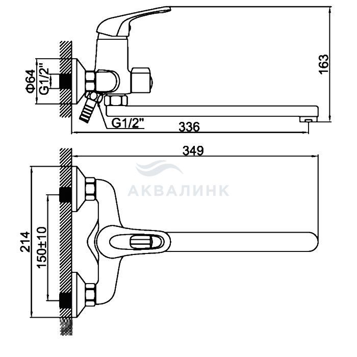 Смеситель для ванны и душа LEDEME L2239-B длинный излив (силумин)
