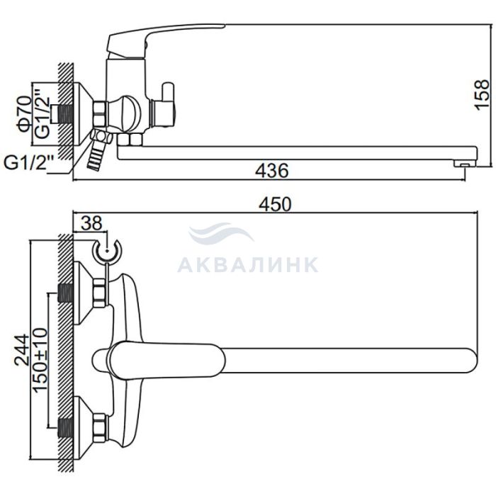 Смеситель для ванны LEDEME L2272 длинный поворотный излив 40см.