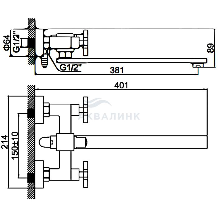Cмеситель для ванны LEDEME L2584 излив L35F-2 дивертор в корпусе, керамика.