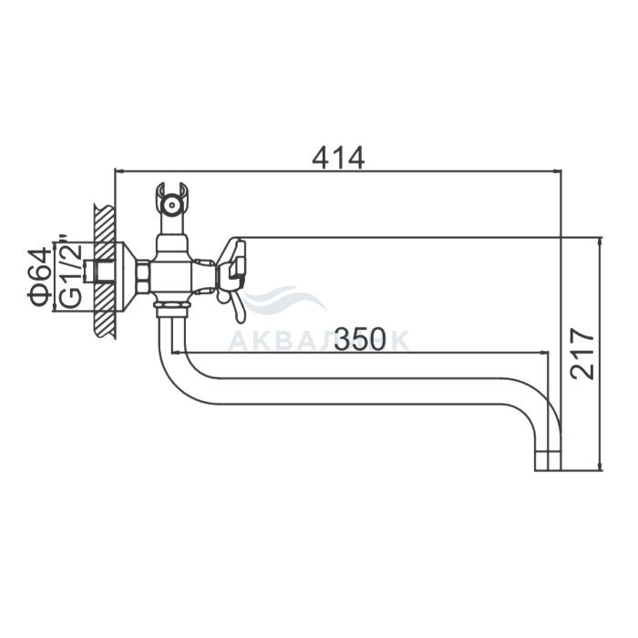 Смеситель для ванны и душа LEDEME L2612-2 длинный излив, ш/п (цинк)