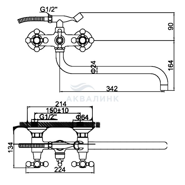 Смеситель для ванны и душа LEDEME L2619-2 длинный излив, ш/п (цинк)