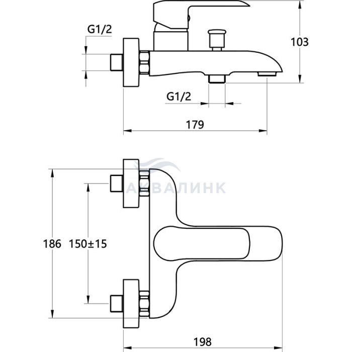 Смеситель для ванны и душа MELODIA Heavy Metal (Хеви-метал), короткий излив, MDV35640