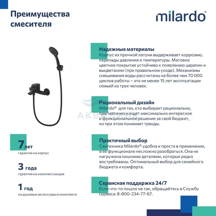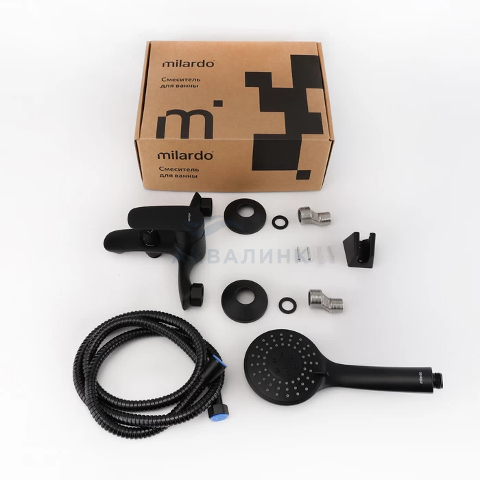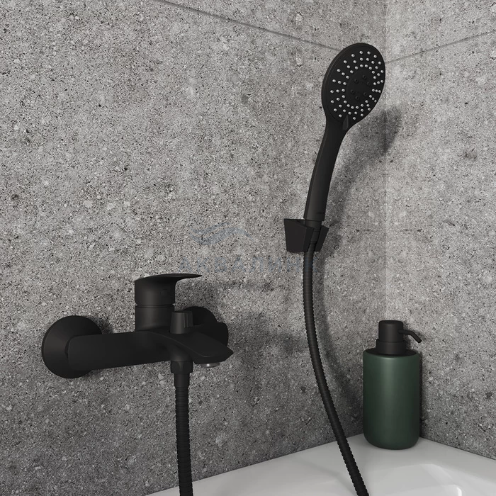 Смеситель для ванны, черный матовый, Rora, Milardo, RORBL00M02 Смеситель для ванны Rora отличается универсальным характером: основной акцент в его дизайне приходится на плавные линии корпуса и трендовый черный цвет. Модель с коротким фиксированным изливом надежна и удобна в ежедневном использовании. Интенсивность и температура потока легко регулируются удобной ручкой смесителя. Поворотный дивертор работает при любом давлении воды, переключая поток воды на большую душевую лейку (ø 100 мм) или в комбинированном режиме. • Ручная лейка из прочного ABS-пластика, ПВХ-шланг (1,5 м) в оплетке из нержавеющей стали и крепеж идут в комплекте.