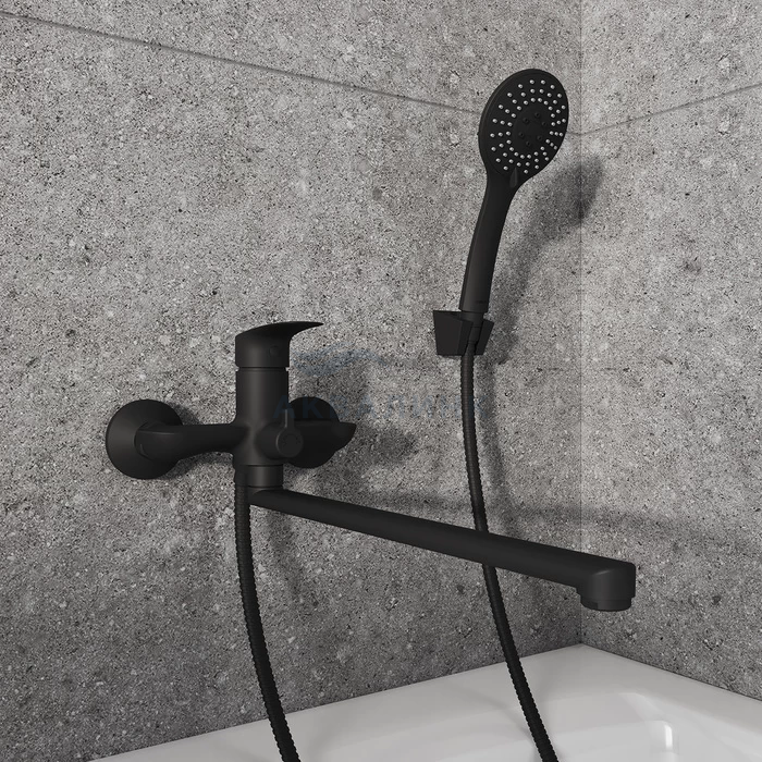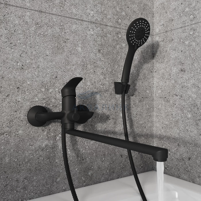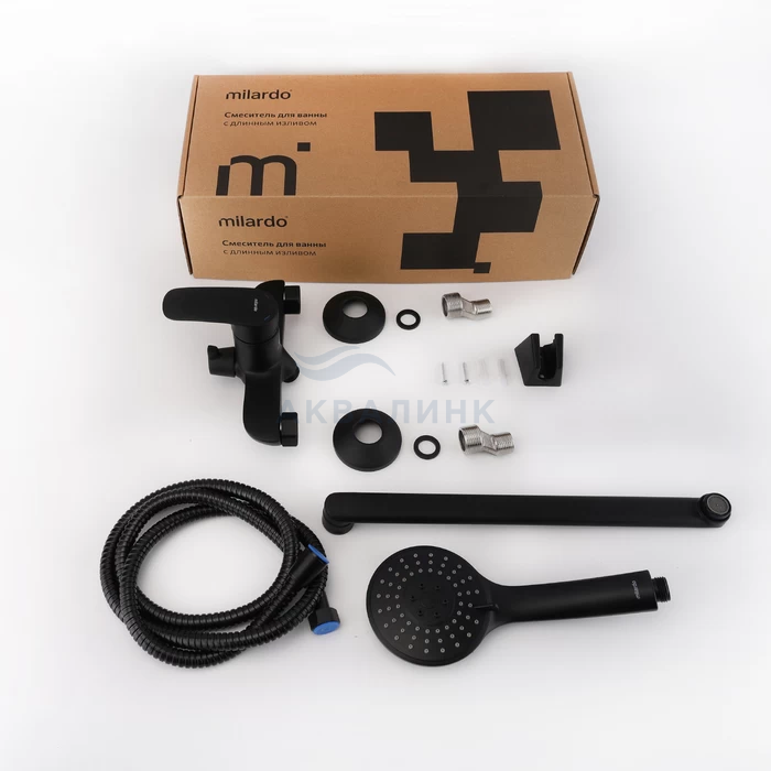 Смеситель для ванны и душа Milardo Рора (Rora) длинный излив, черный матовый, RORBL00M10