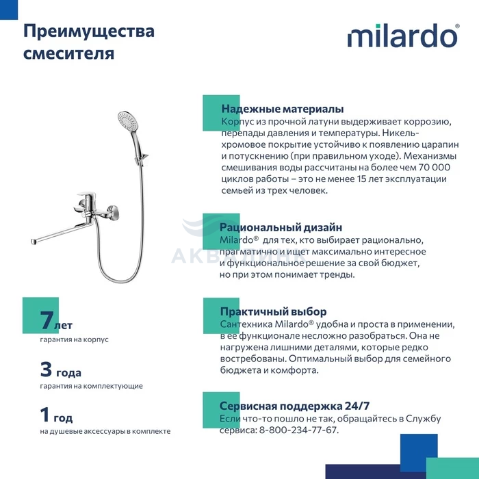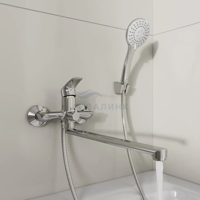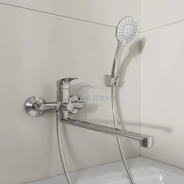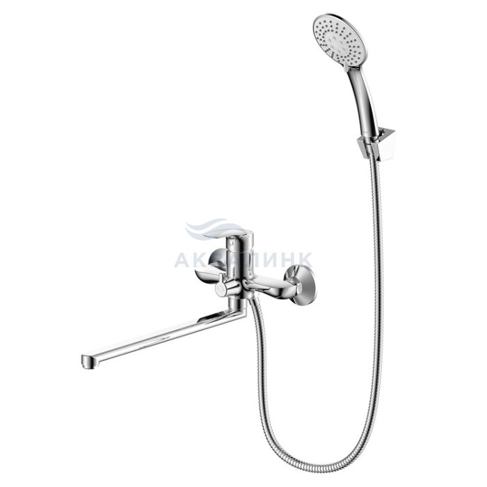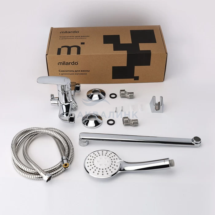 Смеситель для ванны с длинными изливом, глянцевый хром, Rora, Milardo, RORSB00M10 Смеситель для ванны Rora отличается универсальным характером: основной акцент в его дизайне приходится на плавные линии корпуса и классическое цветовое решение. Наличие длинного (35 см) излива позволяет использовать пространство ванны максимально эффективно. Интенсивность и температура потока легко регулируются удобной ручкой смесителя. Поворотный дивертор работает при любом давлении воды, переключая поток воды на большую душевую лейку (ø 100 мм) или в комбинированном режиме. • Ручная лейка из прочного ABS-пластика, ПВХ-шланг (1,5 м) в оплетке из нержавеющей стали и крепеж идут в комплекте.