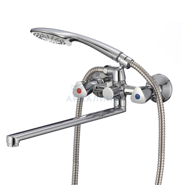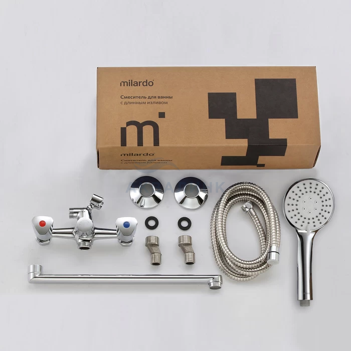 ВНИМАНИЕ: Лейка в комплекте может быть 3-режимной или 1-режимной (зависит от партии). Смеситель для ванны с длинным изливом, Tring, Milardo, TRISBL2M10 Треугольные ручки дополняют лаконичный дизайн смесителя Tring. Благодаря такой форме и углу поворота в 180 градусов регулировать температуру и напор воды удобно даже мыльной рукой. Термоизоляция ручек не позволяет им нагреваться – взрослые и особенно дети защищены от случайных ожогов. Поворотный излив делает смеситель удобным как для купания, так и для уборки или стирки. Лейка для душа (3 режима) с держателем, гибкий шланг (1,5 м) в оплетке из нержавеющей стали и крепеж идут в комплекте.
