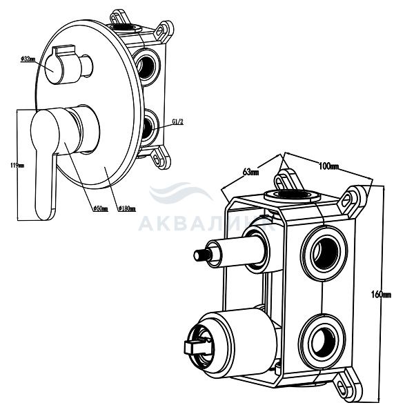 Смеситель для ванны и душа Swedbe Platta (Платта) 5521 встраиваемый подключение на 3 выхода в монтажном боксе