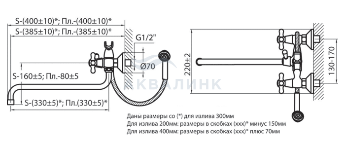 Смеситель для ванны/раковины Ретро S-образный излив 330 мм 7012221 - резиновые кран-буксы 7012222 - керамические кран-буксы