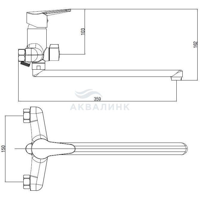 Смеситель для ванны и душа VODA Breeze (Бриз) излив 320мм, хром BZ31