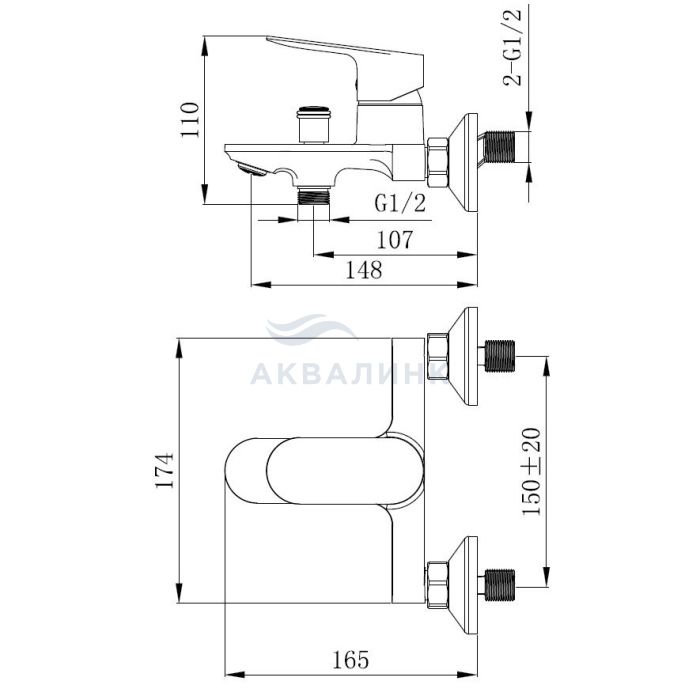 Смеситель для ванны и душа VODA Shore (Берег), хром SHR54 (без аксессуаров)