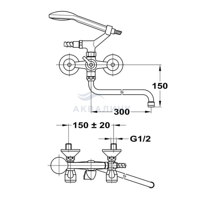 С противонакипной душевой лейкой Бэзик. С держателем душа Евростар. Со шлангом 1500 мм. С противонакипным аэратором, М22х1. С трубчатым, поворотным изливом S300мм.