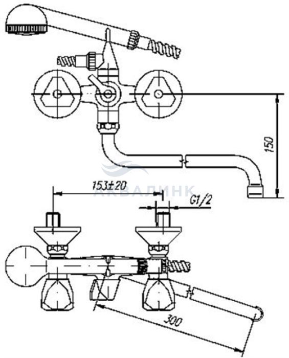Смеситель для ванны MOFEM Метал Плюс (604 M PL) кран-букса резина, 145-0001-15