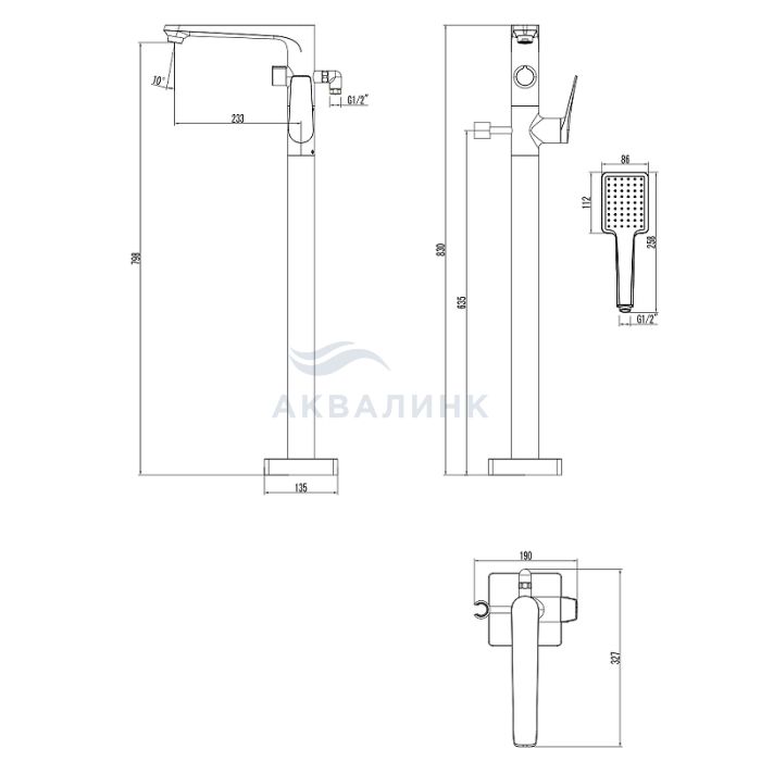 Смеситель напольный LEMARK Bronx для ванны и душа, графит LM3744GM